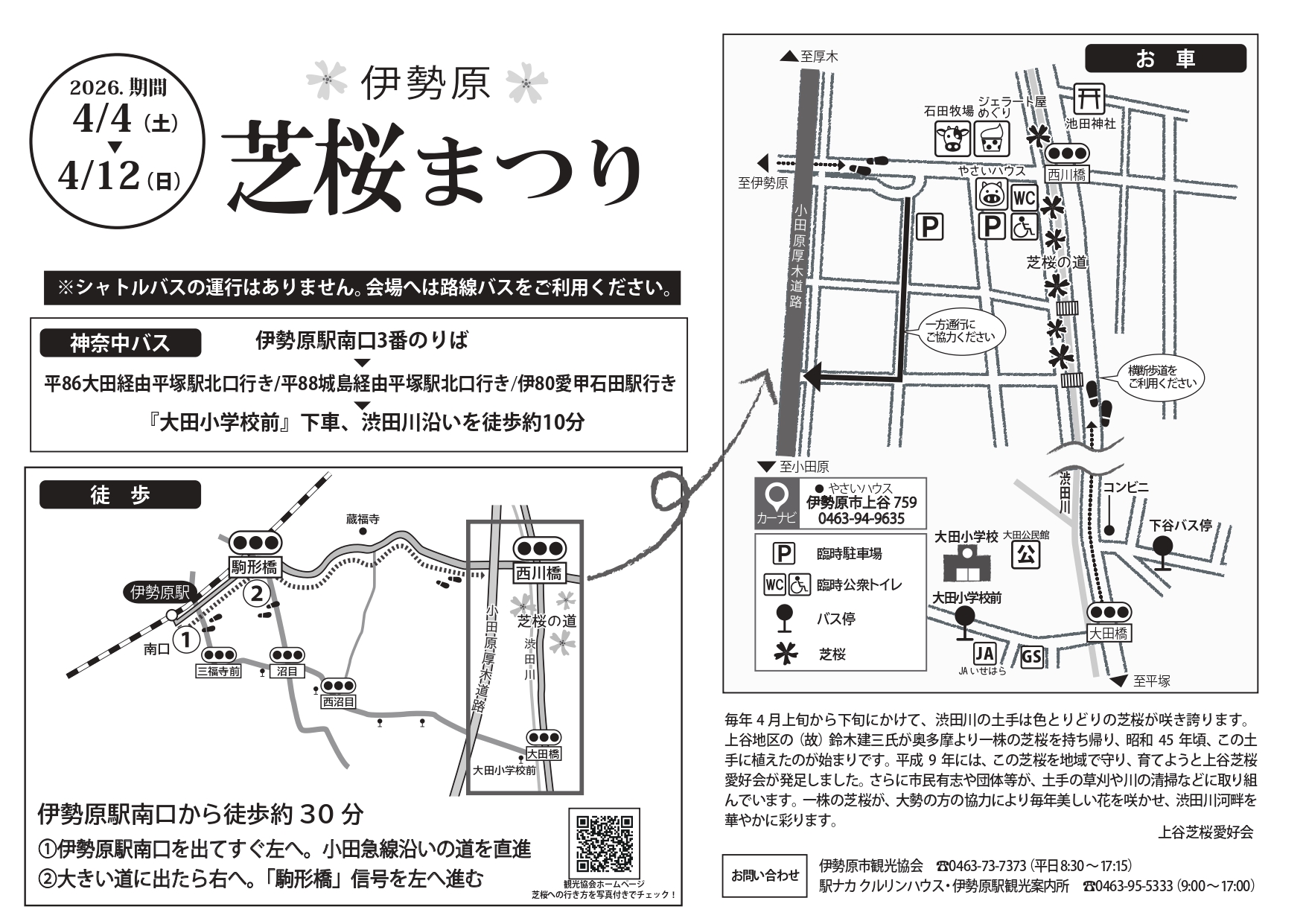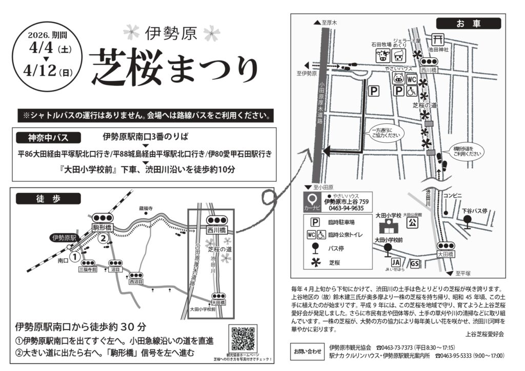 アクセス:伊勢原駅南口からバス(平塚駅行、または愛甲石田駅行)「大田小学校」下車徒歩10分
